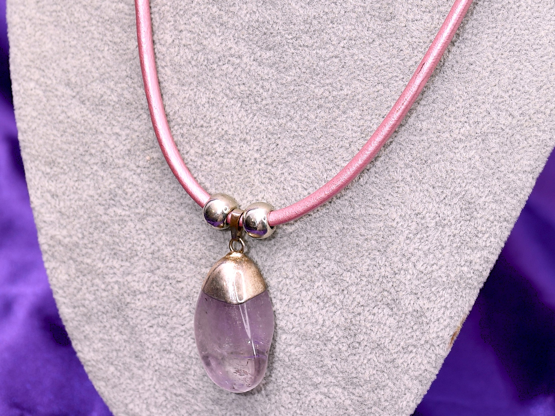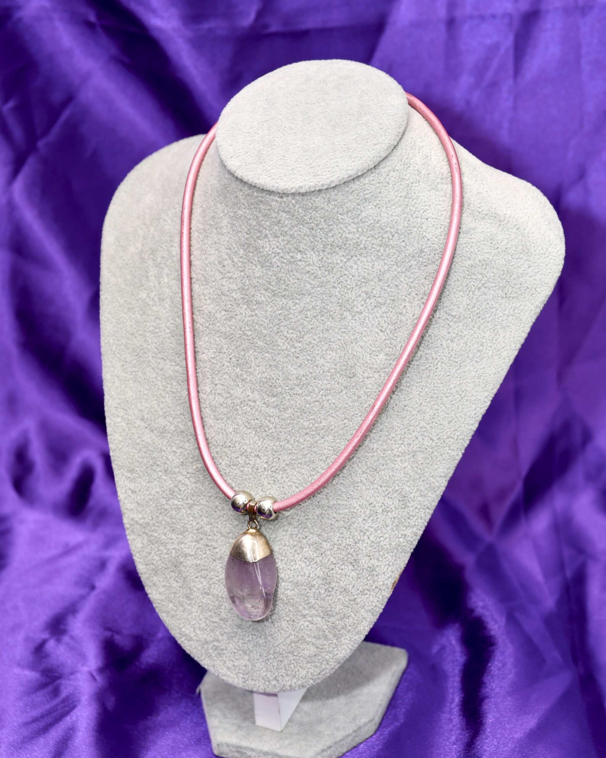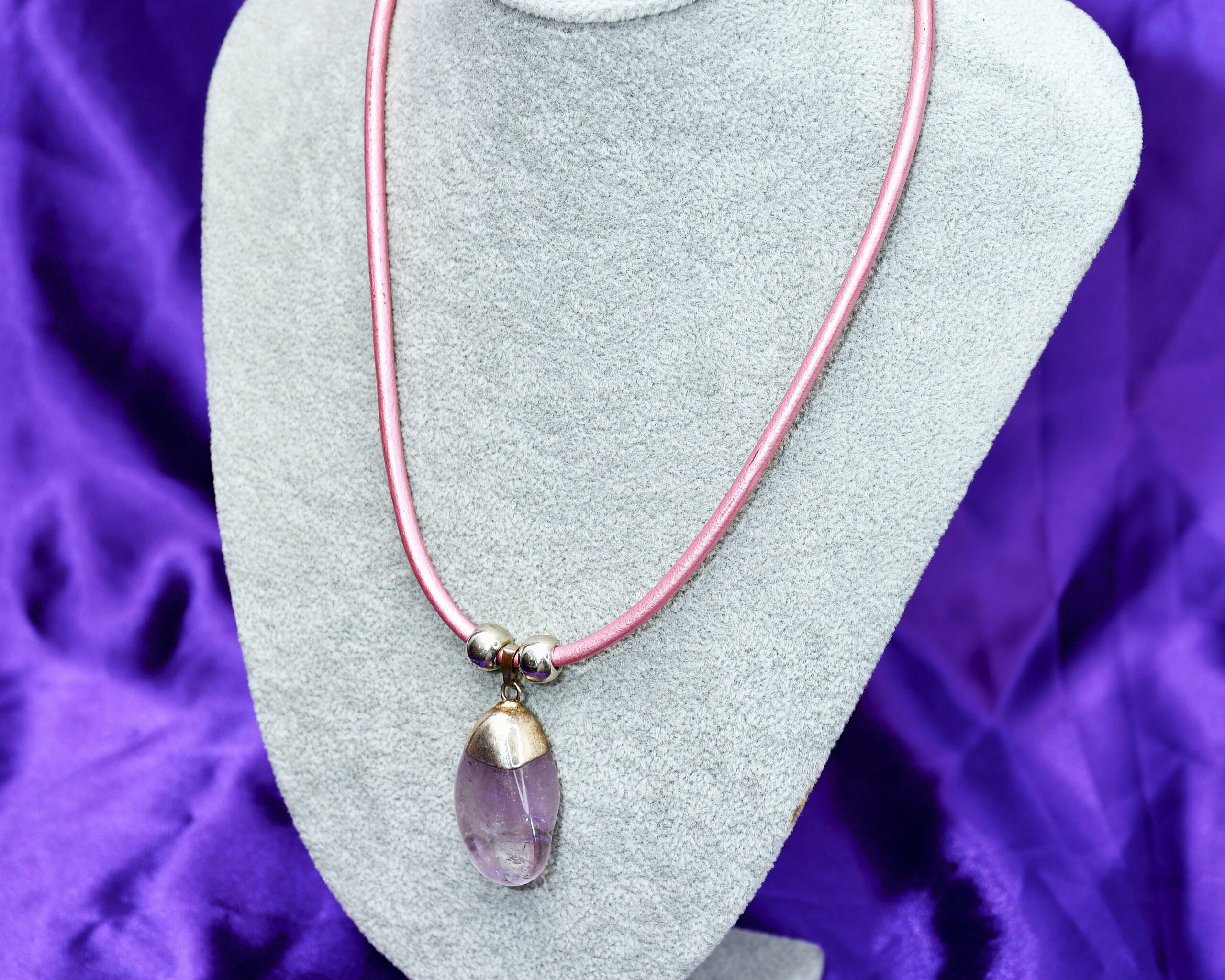 Kožna ogrlica sa masivnim priveskom od ametista | Unikatni ručni rad