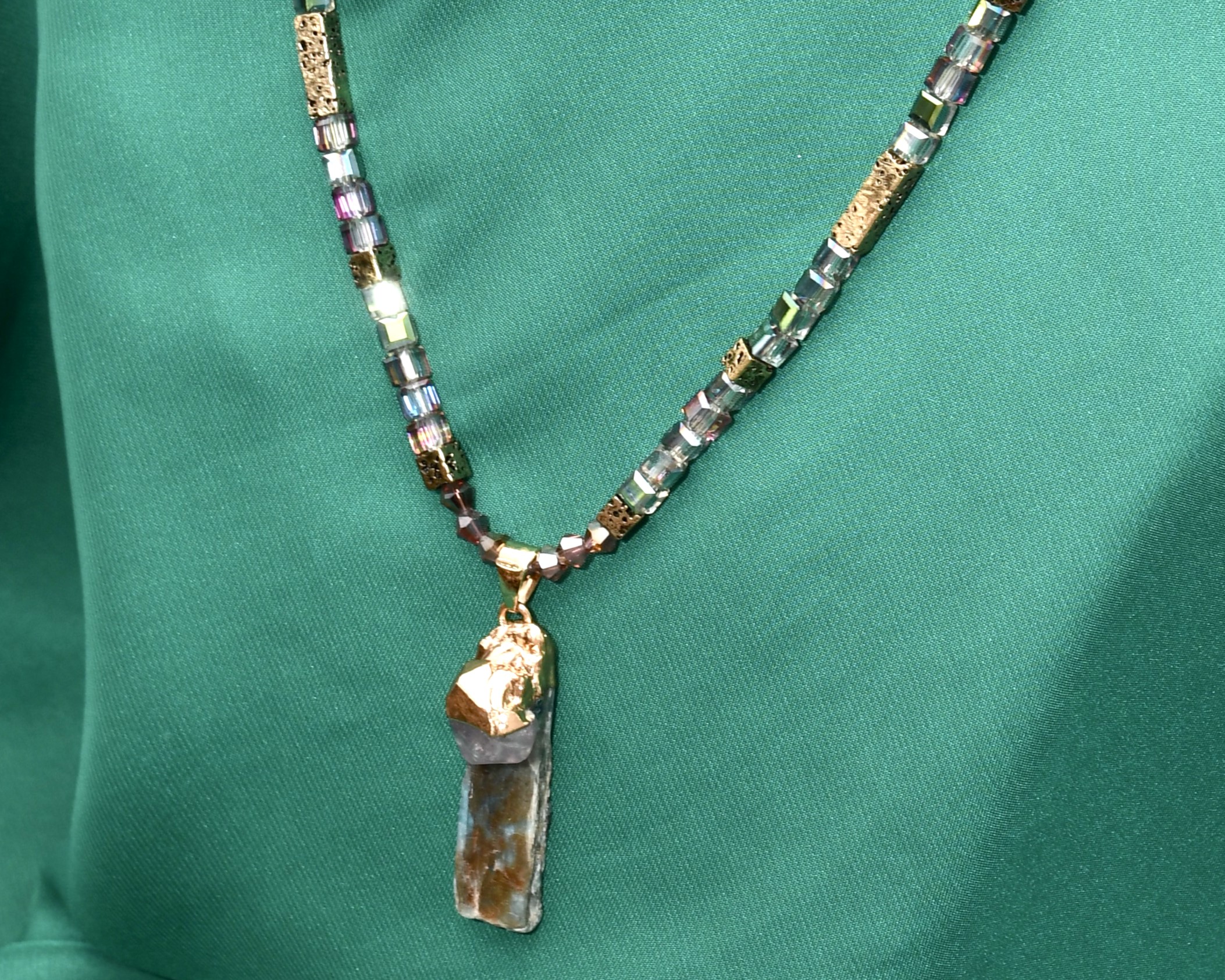 Unikatna energetska ogrlica od hematita u pozlati sa kijanitom i ametistom | energetska zaštita